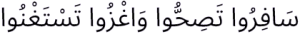 “Safarlah kalian maka akan sehat, dan berjihadlah kalian maka akan kaya. Hadits ini disebutkan pula dalam kitab Musnad Imam Ahmad, nomer hadits 8588, yang diriwayatkan Abu Hurairah.
